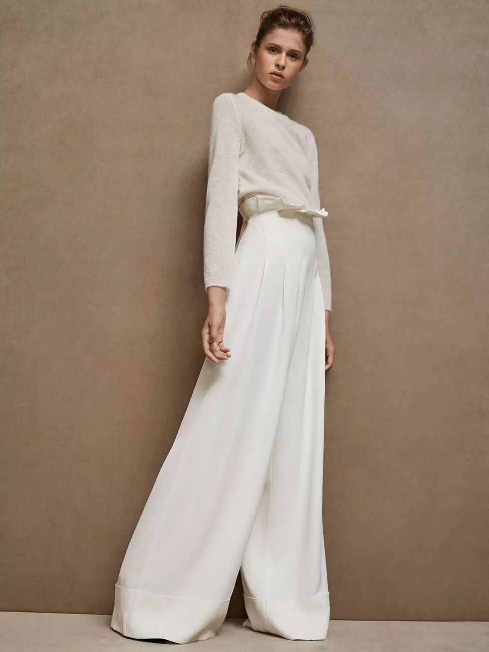 看起来裙裤就是阔腿裤的宽大版,可是的确不是同一条!阔腿裤的剪裁偏向直线型,而裙裤的剪裁更加具有流线感和曲线美,远远看去真的就是一条裙子。左边的是正统阔腿裤,而右边是SKANTS,大家对比一下就明白了。