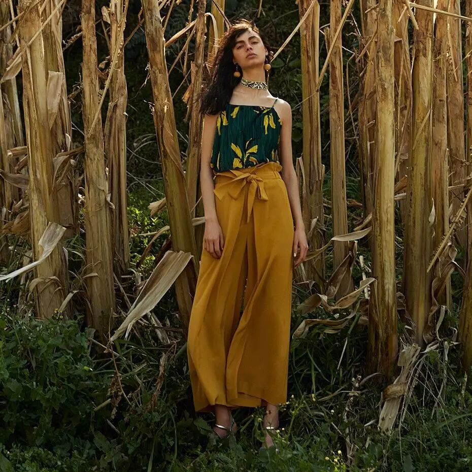 出门玩可以搭配具有民族风情的吊带,花纹不必繁复,因为裤子已经可以给你足够的吸睛。腰带、开叉、大褶皱想怎么穿就怎么穿!