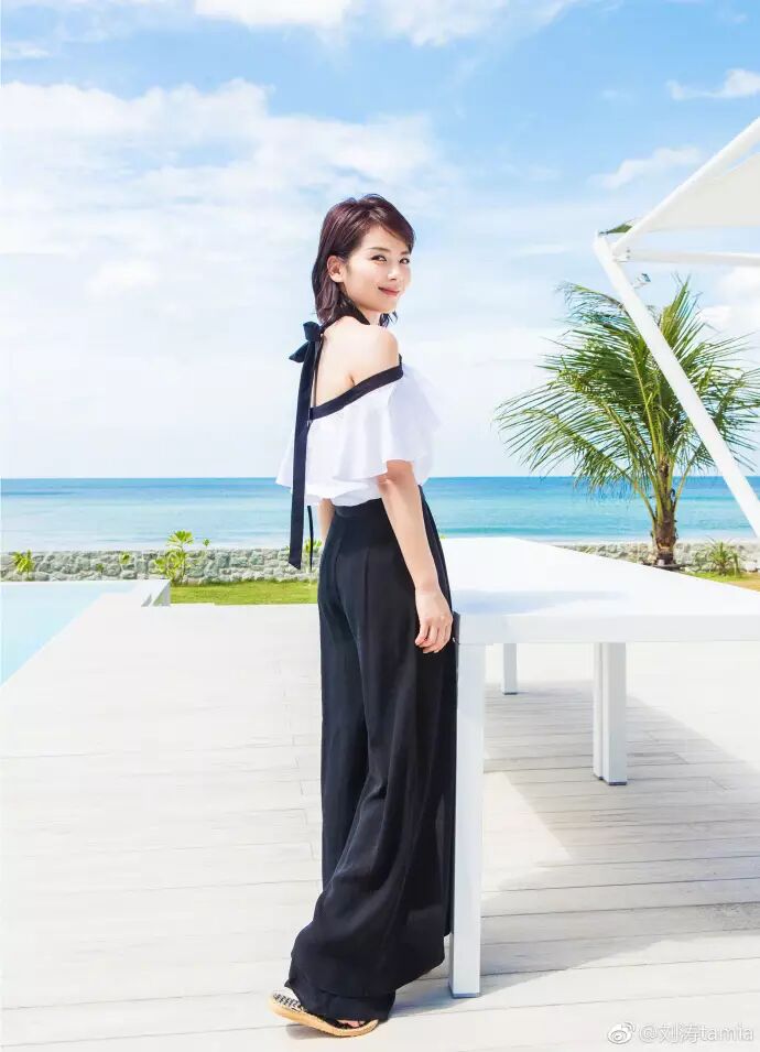 去度假也正是穿SKANTS的好机会,混搭是SKANTS最擅长的领域。无论搭配上长款风衣或是薄纱外套,都可以打造优雅的层次。像Jolin里面内搭一件印花吊带就很有夏天的感觉,深蓝、浅蓝、深咖的碰撞,玩味十足,走在人群中不愁没有回头率。